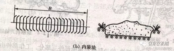 刀片都朝刀轴中间弯,该装法耕后中间有垄,起填沟作用。
